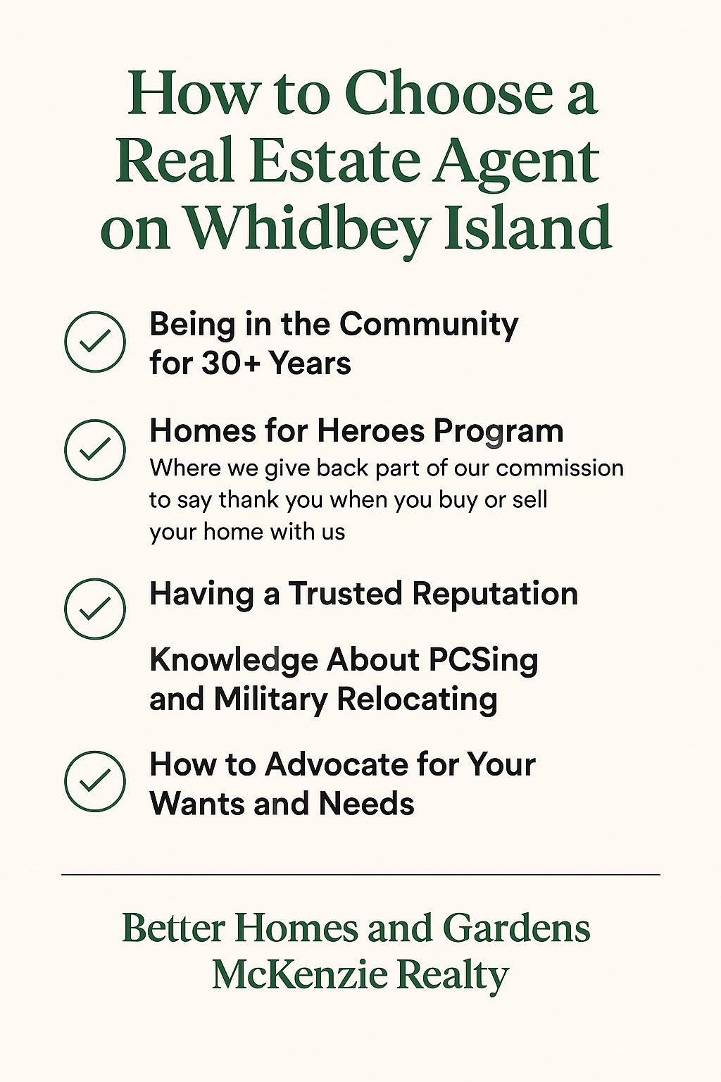 Looking for the best real estate agent on Whidbey Island? Discover how Better Homes and Gardens McKenzie Realty combines 30+ years of local experience, a Homes for Heroes giveback program, and trusted expertise in military relocation to help you buy or sell with confidence.